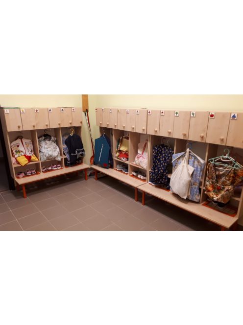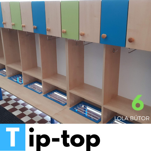 A TIP-Top szekrény 3 osztásos kialakításával összesen 6 gyermek számára biztosít jól tagolt öltözőhelyet. A szekrény praktikus elrendezése és masszív szerkezete hosszú távon is ideális megoldás óvodai környezetbe.