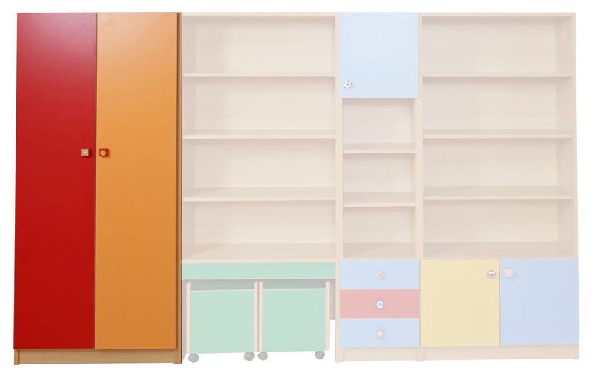A Midas kétajtós szekrény kifejezetten úgy készült, hogy zárt tárolási lehetőséget biztosítson csoportszobák, raktárak vagy speciális foglalkoztatók számára. A 90 × 180 × 35 cm méretű elem két ajtaja mögött tágas, polcos belső tér található, amely szerint egyszerűen rendszerezhetők a játékok, könyvek, eszközök vagy személyes tárgyak.