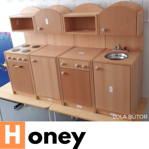 A játékkonyha esztétikus, natúr színvilágú kialakítása jól illeszkedik bármilyen óvodai környezetbe. A lekerekített sarkok, az óvodai használatra tervezett masszív kivitel, valamint a biztonságos anyaghasználat mind azt a célt szolgálják, hogy a gyerekek teljes biztonságban játszhassanak.