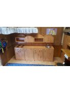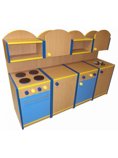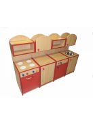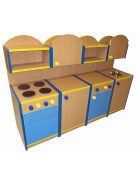 Ebben a bútorban megtalálható minden, ami a konyhai szerepjátékhoz szükséges: beépített tűzhely, mosogató, polcok és tárolórekeszek.